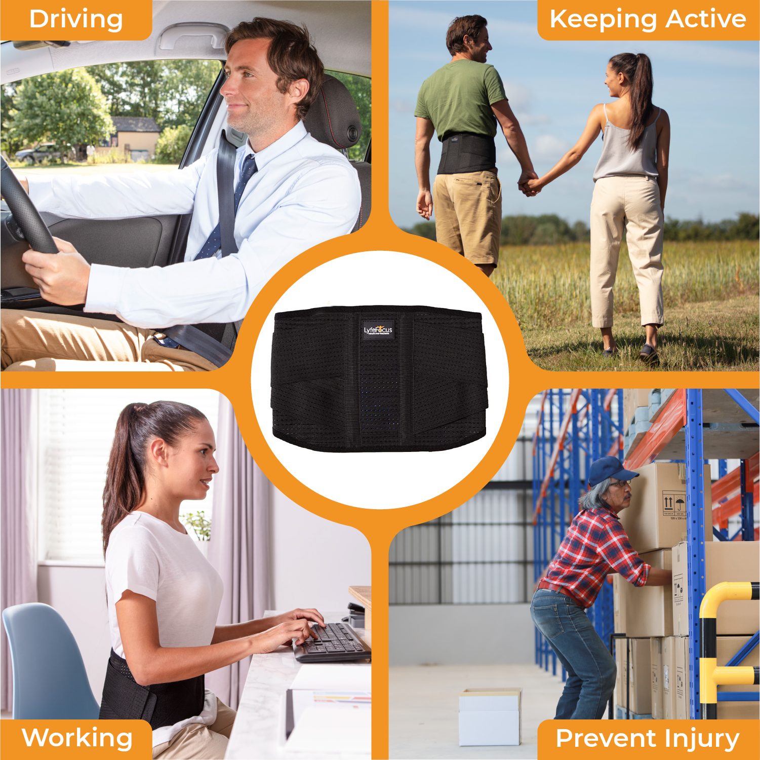 The lumbar support belt allows you to keep the level of activity to a healthy level, stabilising the lower back and core muscles.