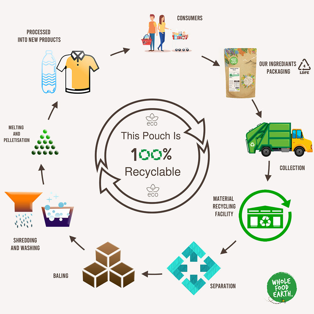 Eco Friendly 100% Recyclable Packaging. Re-sealable pouch for Long Lasting Freshness!