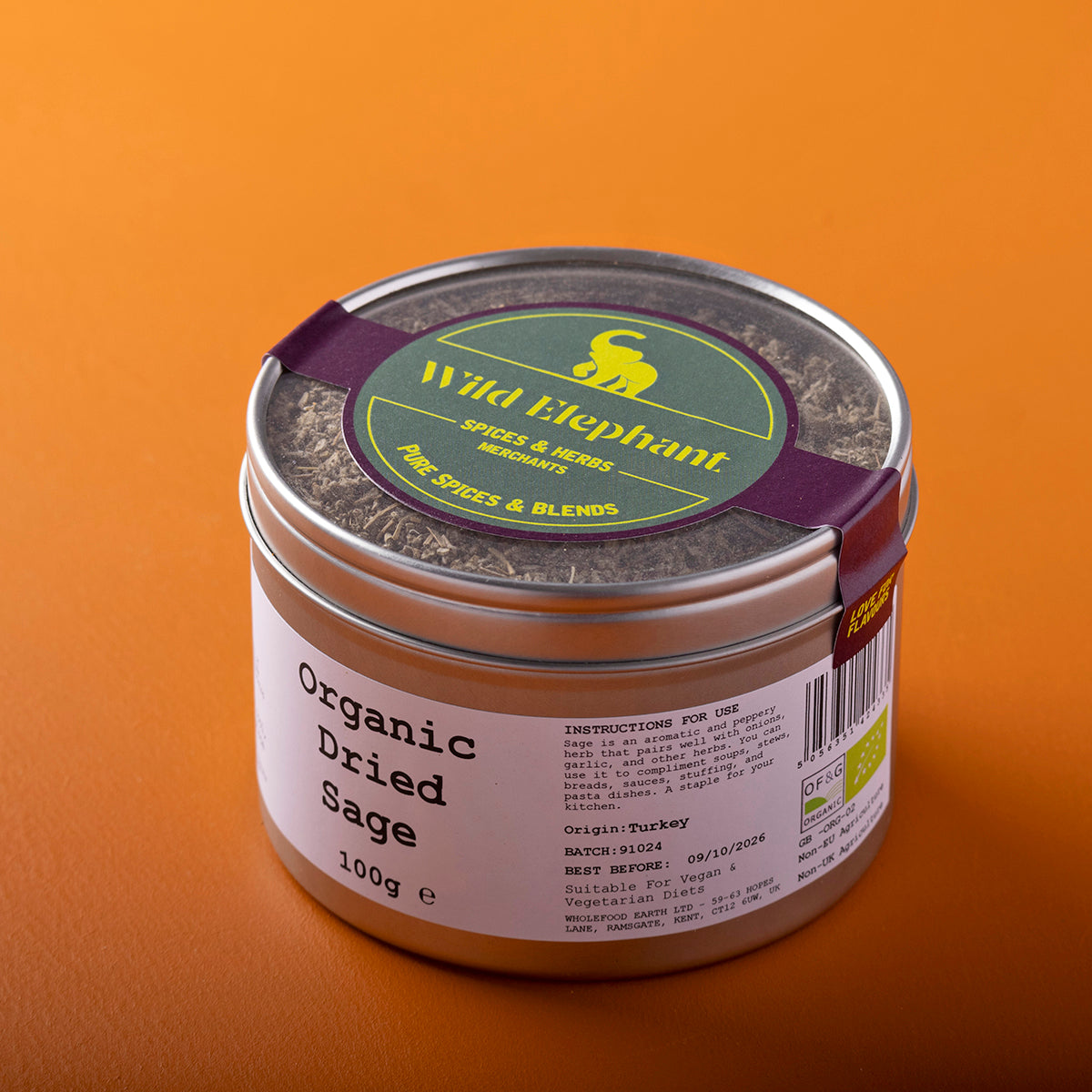 Our Wild Elephant Organic Sage has a strong herbal aroma and flavour that is earthy and slightly peppery with a hint of lemon, mint and eucalyptus.