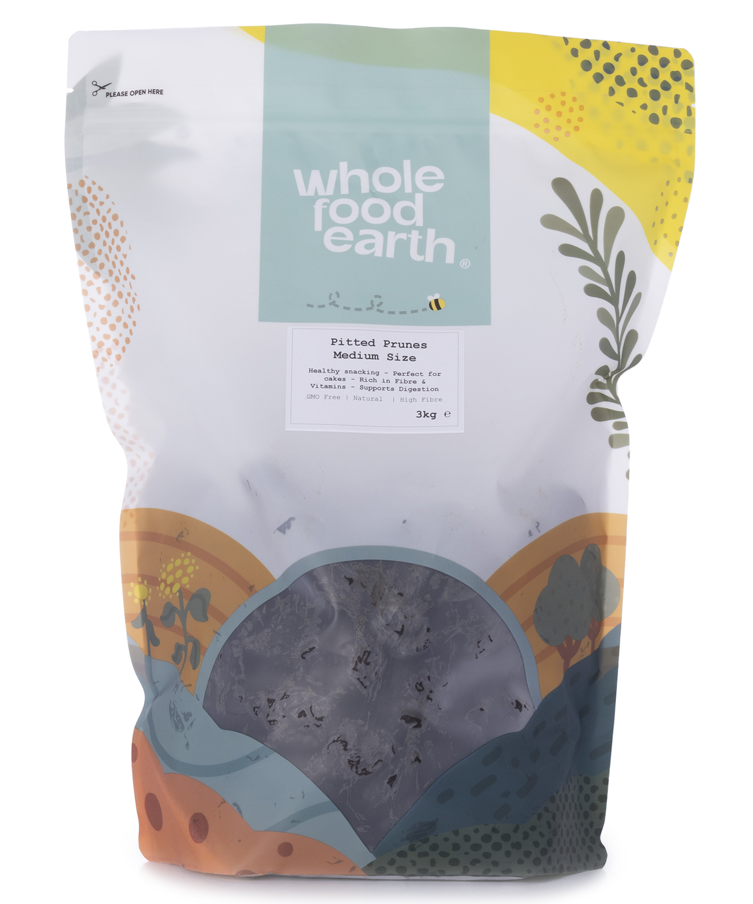 Dried pitted prunes are a great source of dietary fibre & a delicious go-to snack. Add pitted prunes to your morning porridge oats. Use in baking. Combine with nuts, seeds & other dried fruits for a healthy trail mix. Try adding to rich stews for a depth of flavours.