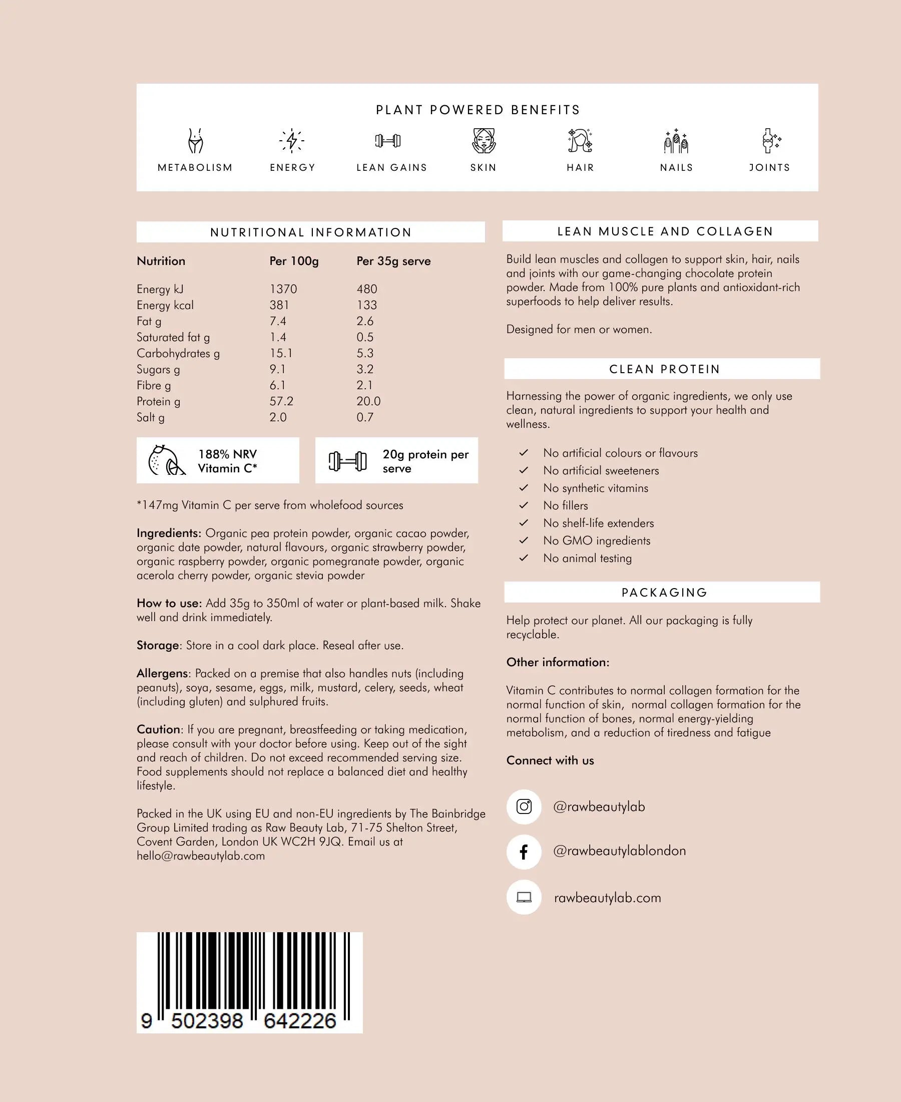 - 20g of plant-based protein per serve